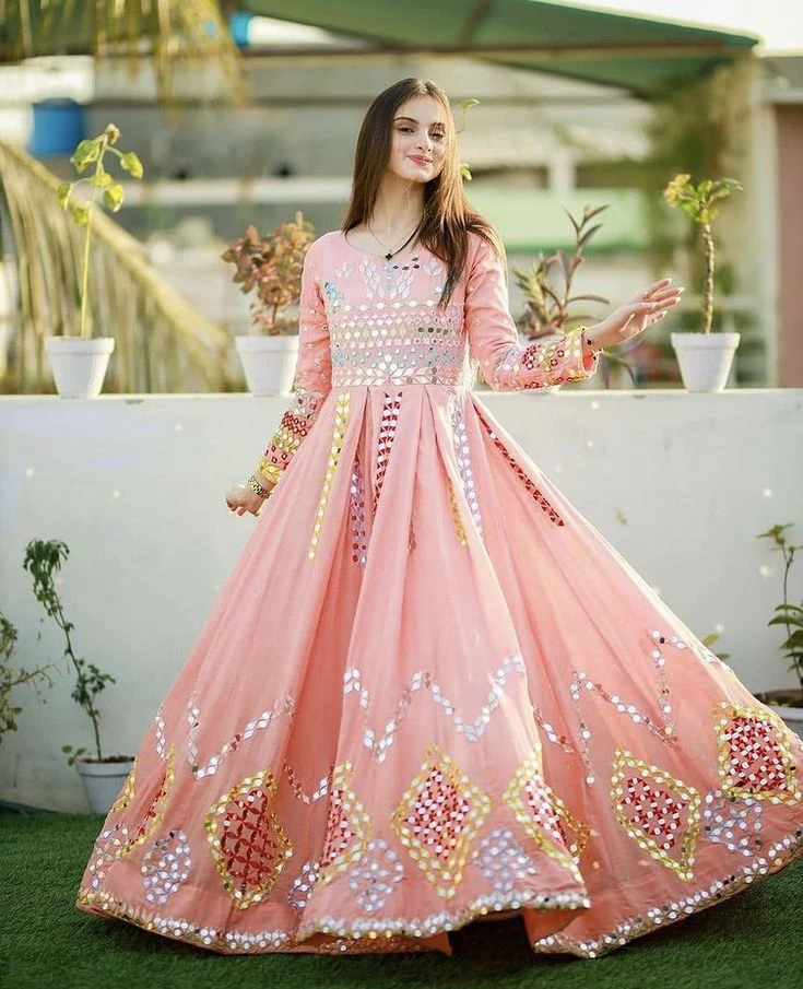 Cute frock with lace and floral decorations.